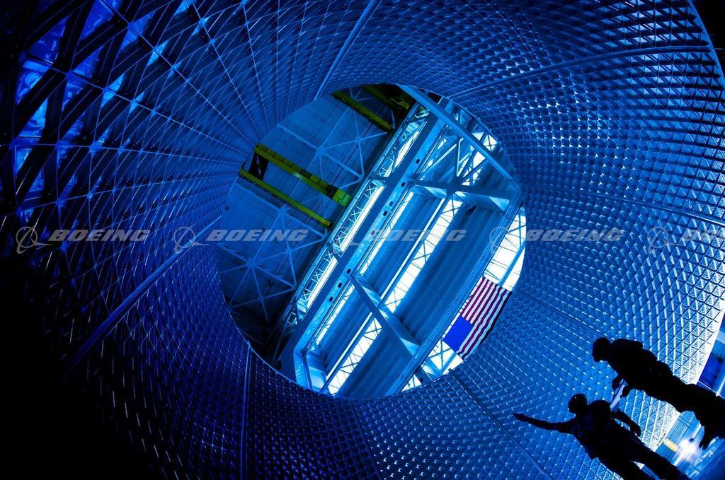 Inspecting SLS Core Stage Barrel at NASA Michoud Facility