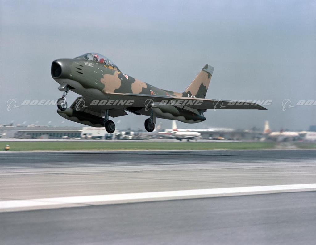The North American F-86 Sabre Jet made its first flight Oct. 1, 1947, and was America’s first single-seat, swept-wing jet fighter. In 1948, it set a new world speed record of 671 mph, and it was the world’s first-line fighter for more than a decade after it was designed. More than 6,000 Sabre Jets were built worldwide. During the Korean conflict, the Sabre Jet flew 82,177 sorties during 32 months of combat and troop support. The version built for the U.S. Navy and Marine Corps was called the FJ-2 Fury.