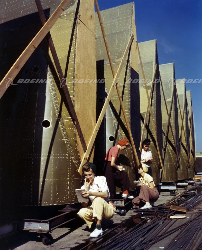 "Rosies" with C-47 Outer Wings in Assembly at Long Beach