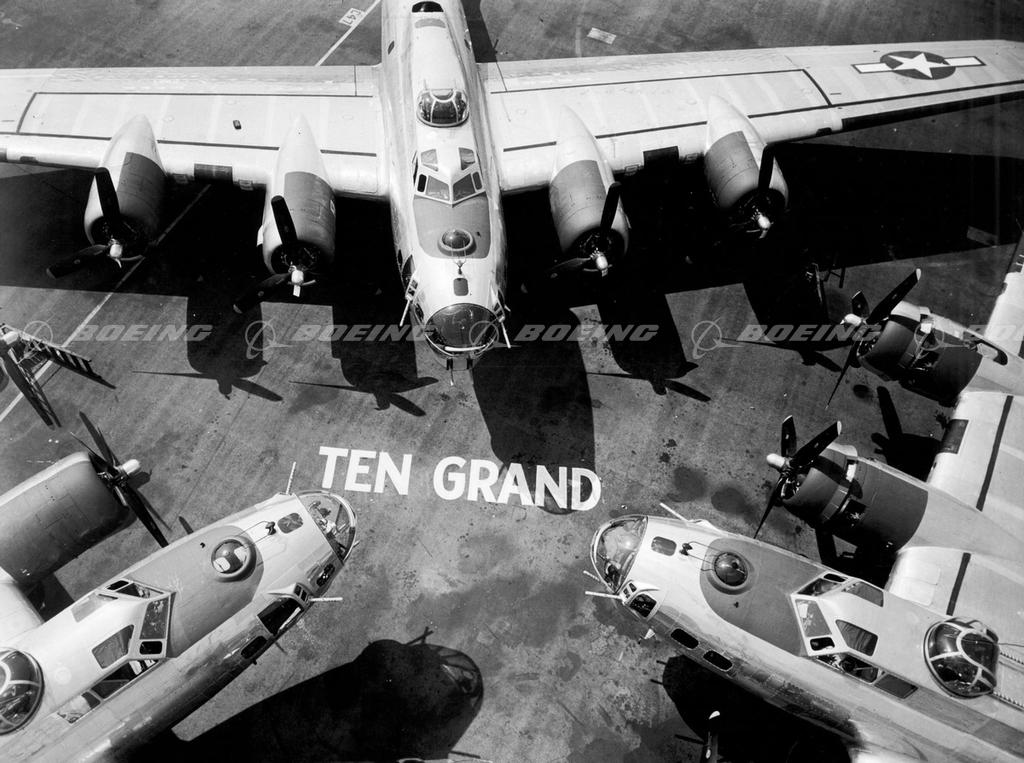 Three milestone B-17Gs come together on October 9, 1944: 9,999 from Douglas; 10,000 from Boeing; and