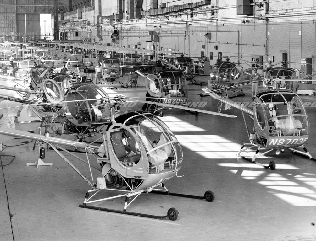 The assembly line in Culver City’s Building 15 for the Model 269A helicopter, circa 1961.