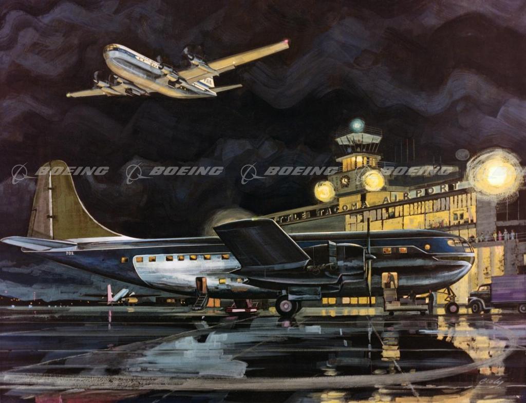 Designers of the 377 Stratocruiser built a roomy, air-controlled, aerodynamically advanced, and smooth-flying commercial air transport. It broke ground for the modern functions of field service engineers, customer training centers, spares, sales and customer liason, and vibration and flight tests.