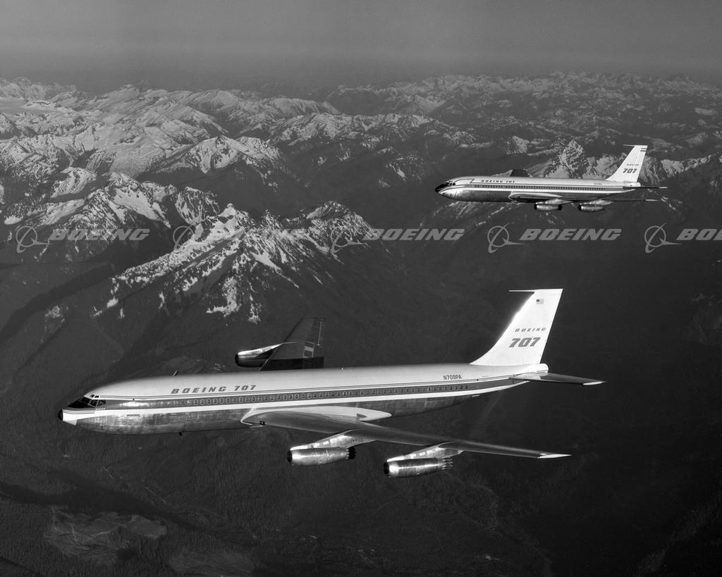 Two 707-120s Flying Over Mt. Rainier in Certification Flight