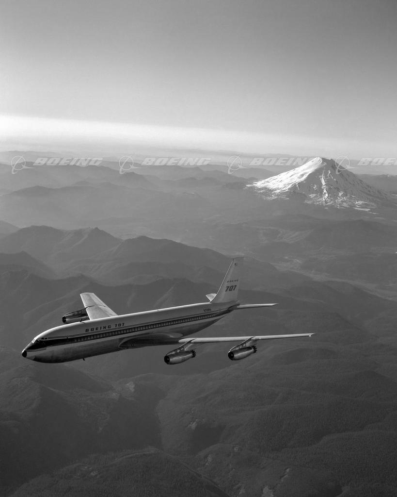707-120, 1 and 3, in Certification Flight over Mt. Rainier