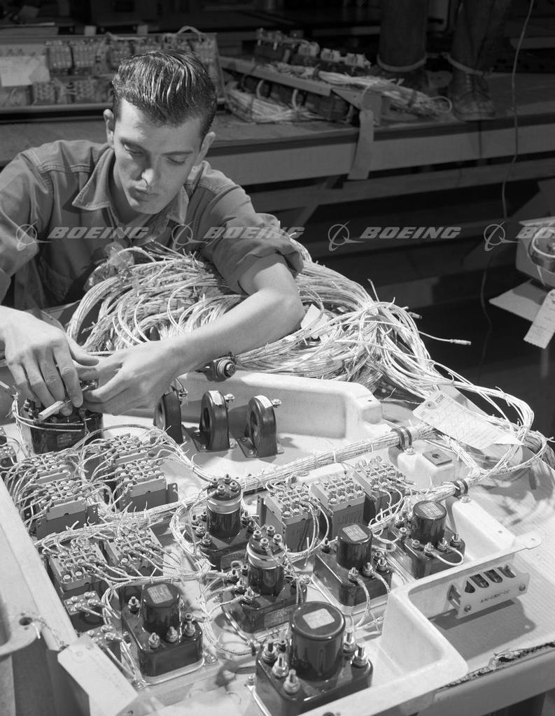 After the Air Force agreed to let Boeing build commercial jets based on the prototype 367-80, already the basis for the KC-135 military tanker, airlines began to order the 707, the commercial transport variant of the Dash 80. The 707 and the KC-135 had many features in common. Both were visually distinct, with a stinger antenna pointing forward from the top of their vertical fin. The 707's width and 100-foot length made it the largest passenger cabin in the air at the time. Placement of its more than 100 windows allowed airlines to rearrange seats. Location of passenger doors on the left side, at the front and at the rear of the cabin, became standard for subsequent Boeing jets. The exteriors of the 707 and its competitor, the DC-8, were almost identical, but the 707 wing had more sweepback, so it could fly about 20 mph faster.