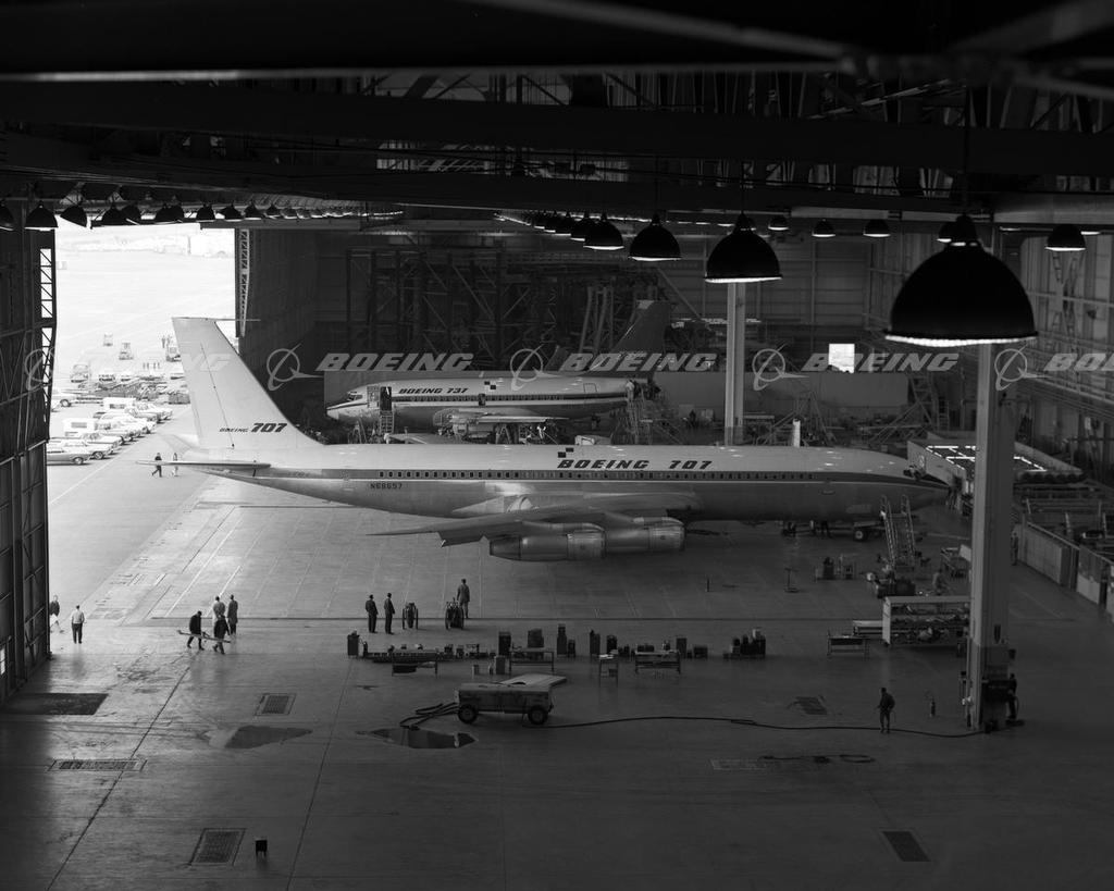 First and Second Boeing 727s on Boeing Flight Line with 707s