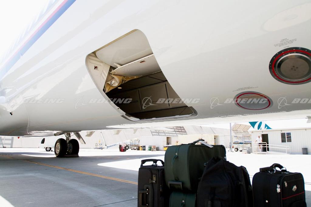 Service Worker Loading Cargo into the Forward Cargo Area of a 717-200