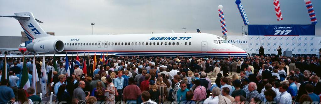 The Boeing 717 was specifically designed for the short-haul, high frequency 100-passenger airline market. The highly efficient 717 concluded its production run in May 2006, though the airplane will remain in service for years to come. The airplane was originally part of the McDonnell Douglas airplane family and designated the MD-95 prior to merger with The Boeing Co. in 1997. The program produced 156 717s and pioneered breakthrough business and manufacturing process for Boeing Commercial Airplanes.