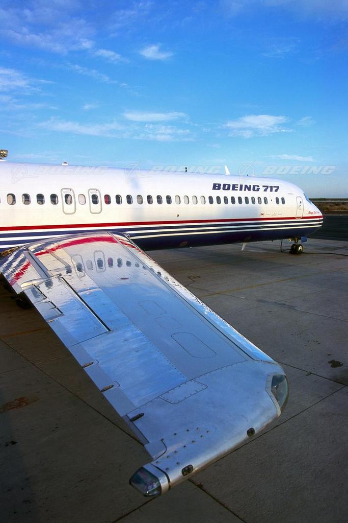 The 717-200 is a full-size twinjet designed specifically for the short-range, 100-seat regional airline market and is a very efficient and exceptionally quiet airplane. Its advanced technologies and rugged simplicity of design allow it quick turnaround time at a wide range of airports, so crew and passengers spend less time on the ground. It makes effective use of today's technology to lower operating costs, reduce noise and emissions, and provide big jet comfort. The airplane, formerly MD-95, was designated the Boeing 717 following the merger of McDonnell Douglas and The Boeing Company in 1997. In early 2005, after careful assessment of the challenging 100-seat market, Boeing announced that it will conclude 717 production in 2006 after delivering on current customer commitments.