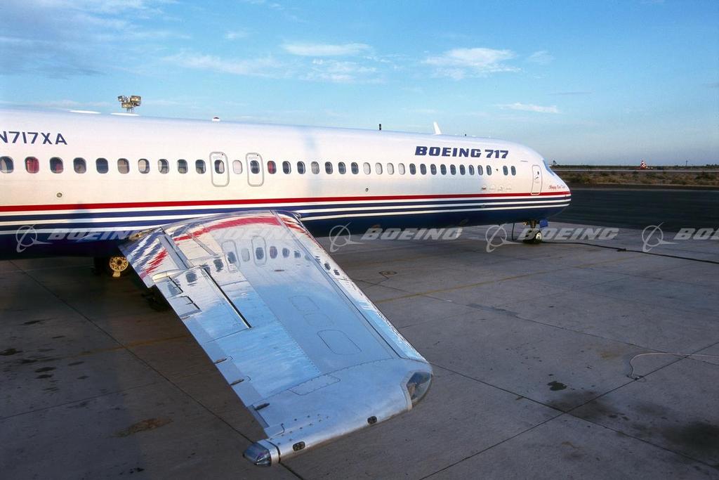 The 717 is a full-size twinjet designed specifically for the short-range, 100-seat regional airline market and is a very efficient and exceptionally quiet airplane. Its advanced technologies and rugged simplicity of design allow it quick turnaround time at a wide range of airports, so crew and passengers spend less time on the ground. It makes effective use of today's technology to lower operating costs, reduce noise and emissions, and provide big jet comfort. The airplane, formerly MD-95, was designated the Boeing 717 following the merger of McDonnell Douglas and The Boeing Company in 1997. In early 2005, after careful assessment of the challenging 100-seat market, Boeing announced that it will conclude 717 production in 2006 after delivering on current customer commitments.