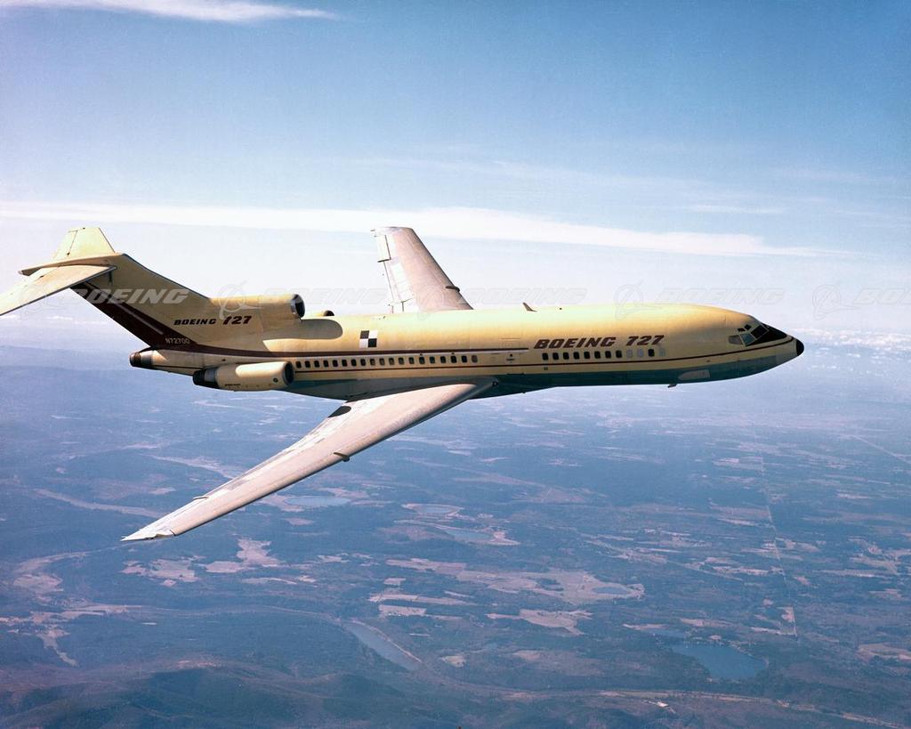 The short-to-medium-range 727 jet, which first flew in 1963, was the only Boeing-built trijet in its time. It was designed to operate out of small airports with shorter runways. The 131-passenger trijet also was the first Boeing commercial jetliner to use an auxiliary power unit (APU). The 727 jet also was built as a freighter and as a ''quick change'' version, which airlines could convert from a passenger transport to a freighter, or a combination of both, as they chose.