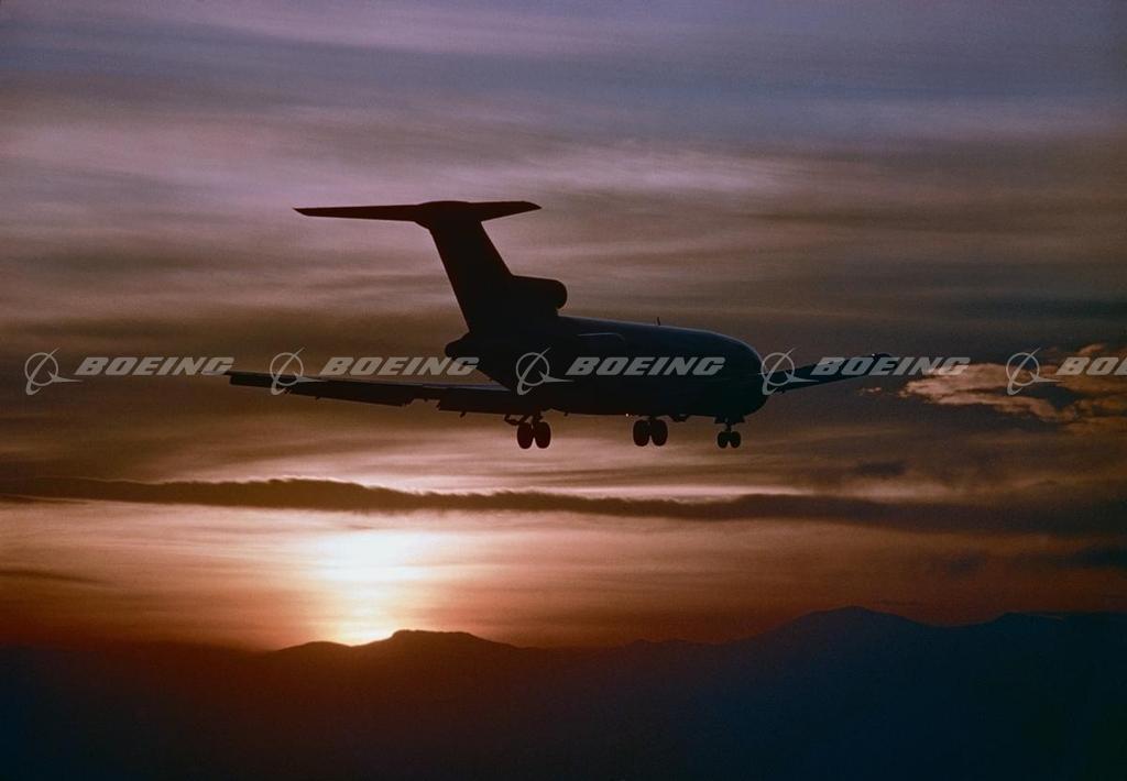 The short-to-medium-range 727 jet, which first flew in 1963, was the only Boeing-built trijet in its time. It was designed to operate out of small airports with shorter runways. The 131-passenger trijet also was the first Boeing commercial jetliner to use an auxiliary power unit (APU). The 727 jet also was built as a freighter and as a “quick change” version, which airlines could convert from a passenger transport to a freighter, or a combination of both, as they chose.