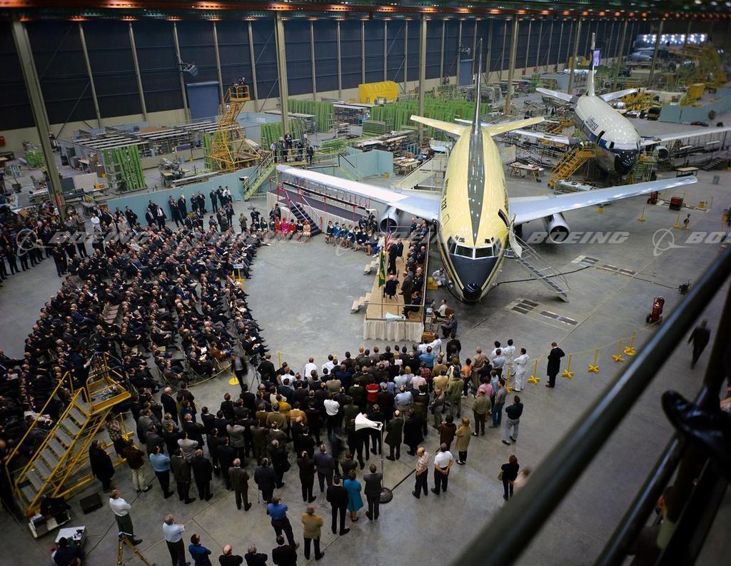 The rollout and christening of the First 737 was done inside the then new Boeing Thompson site at Boeign Field in Seattle, Today the site is the home of the Boeing P-8 Poseidon.
