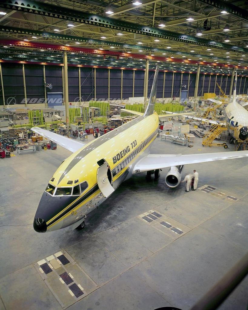 In 1967, the smaller, short-range 737 twinjet was the logical airplane to complement the 707 and the 727. There was increasing demand for transports in its category, but the 737 faced heavy competition from the Douglas DC-9 and the British Aircraft Corp. BAC-111. The 737 had six-abreast seating -- a selling point, because this way it could take more passengers per load -- the DC-9 seated five abreast. The number of seats in the 737 also was increased by mounting the engines under the wing. This engine placement buffered some of the noise, decreased vibration and made it easier to maintain the airplane at ground level. By 1987, the 737 was the most-ordered plane in commercial history.
