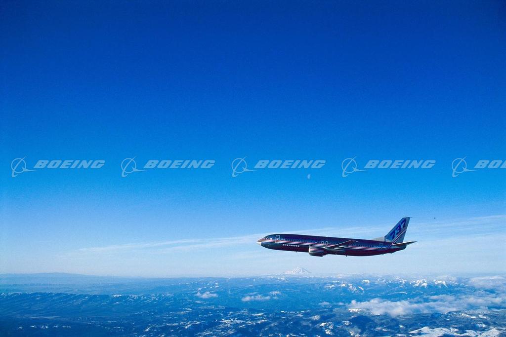 Development of the quieter, more fuel-efficient CFM56-3 series of engines allowed Boeing to improve its most popular jetliners and produce the advanced-technology 737-330, -400, and -500. The engines are larger and mounted forward of the wing struts instead of tucked directly under the wing as in the -100 and -200 versions. Advancements on the new-generation 737s included a stregthened wing to accomodate greater gross weight, tip extensions to the wings and horizontal stabilizers, and stregthened wheels, tires and brakes. The 737-200, -300, -400, -500 have the same handling characteristics so that pilots can use the same Type rating to fly all of them. Airlines' spares inventory and maintenance are simplified by making a substantial number of replaceable parts on the -300, -400, -500 identical to those used on the -200. The 737-400 is about 10 feet longer than the 737-300. It holds 19 more passengers and has a gross weight of up to 150,000 pounds, while retaining the same fuel efficiency, low noise, and low operating costs as its predecessor.
