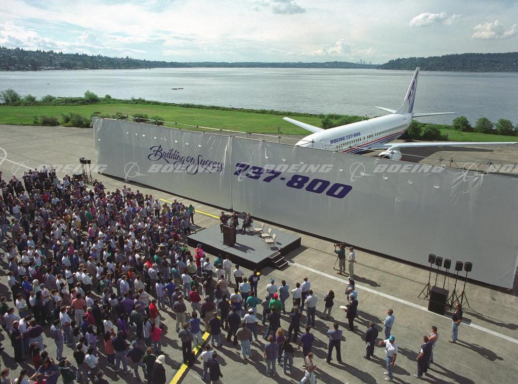 Crowd Gathers Around the First 737-900 at the Rollout Ceremony