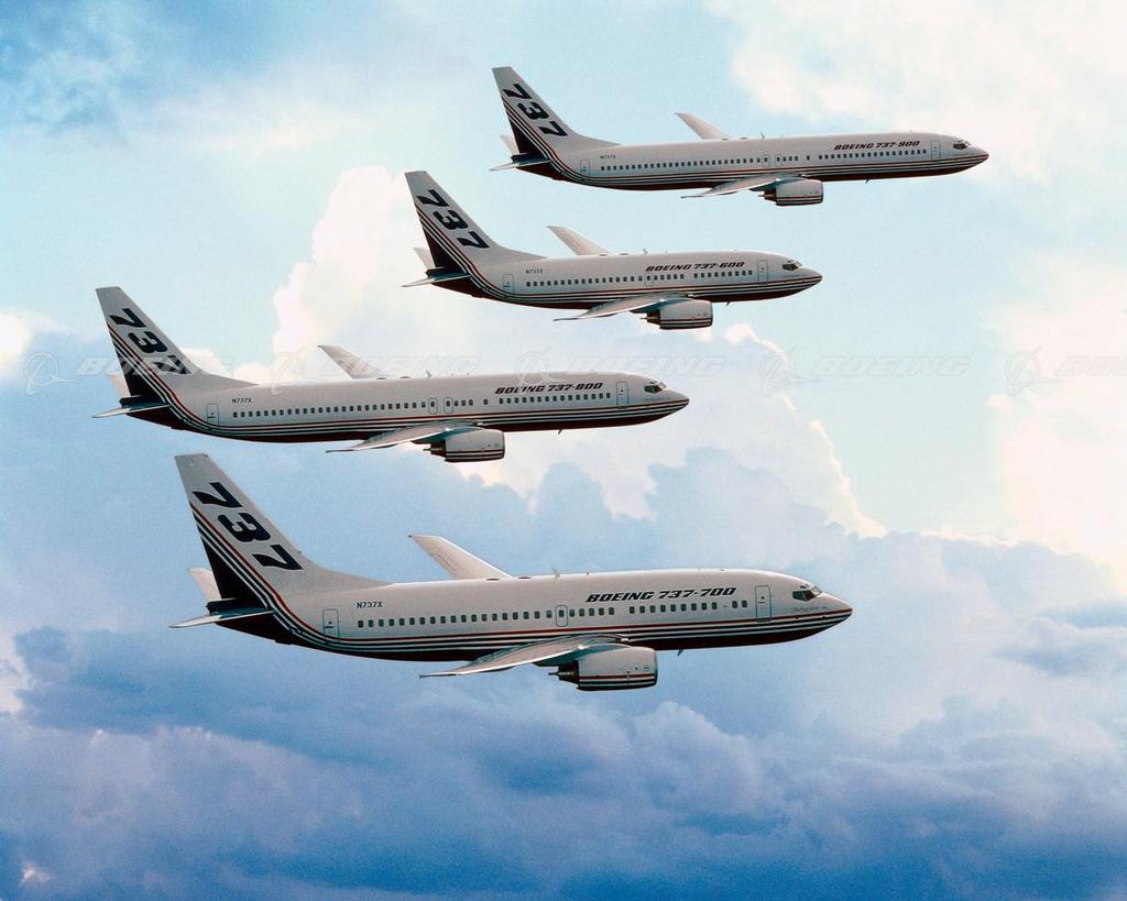 Boeing 700 series Airplane Family in 1981 Red, White, and Blue Livery