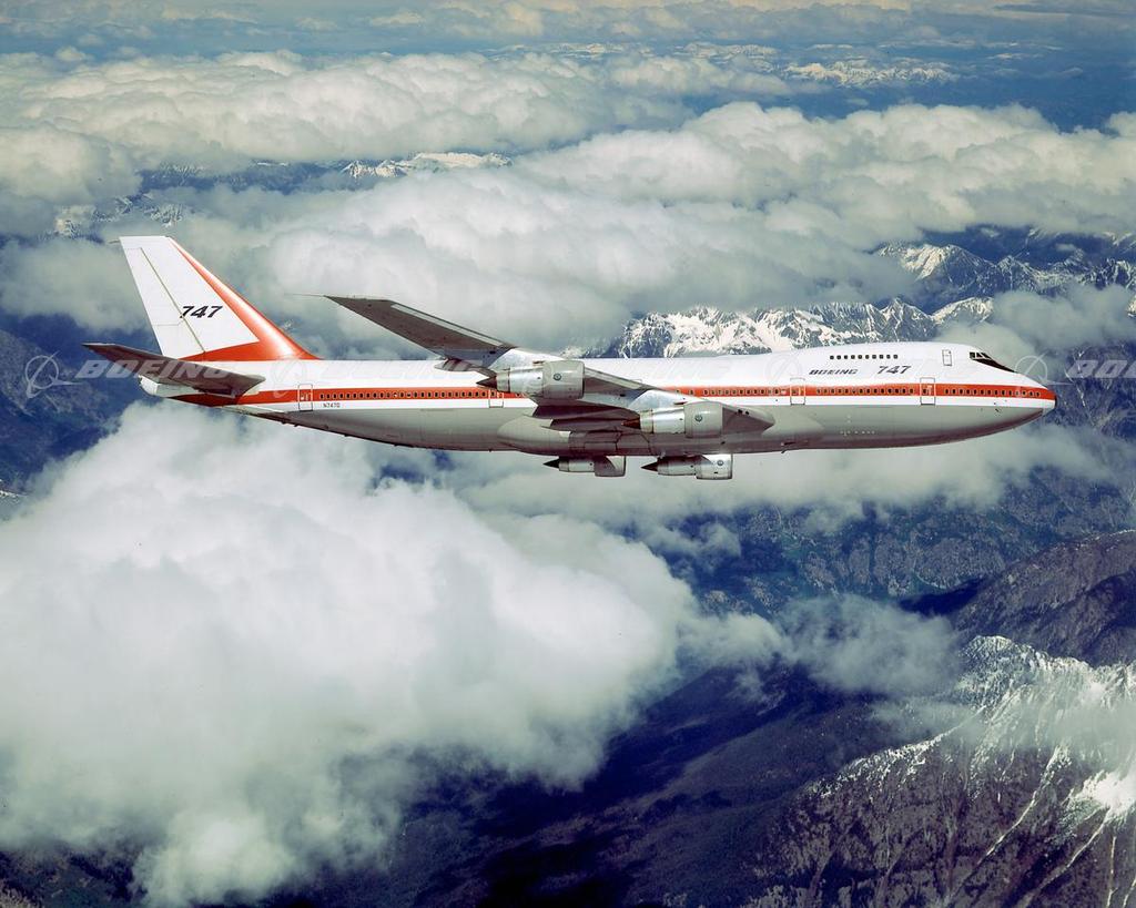 747-100 Painted as a 747-200 Flies over Snowy Mountains