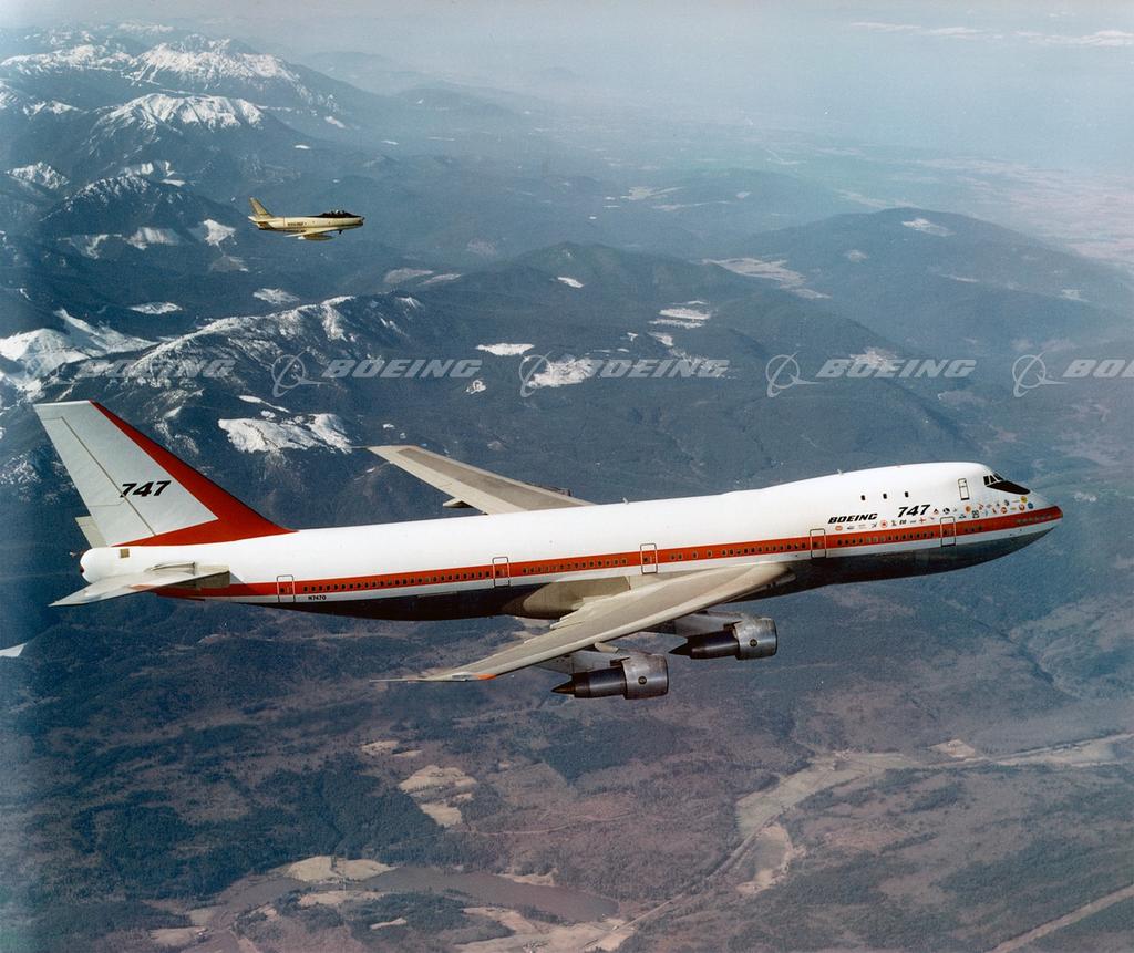 747-100 First Flight with Chase Plane