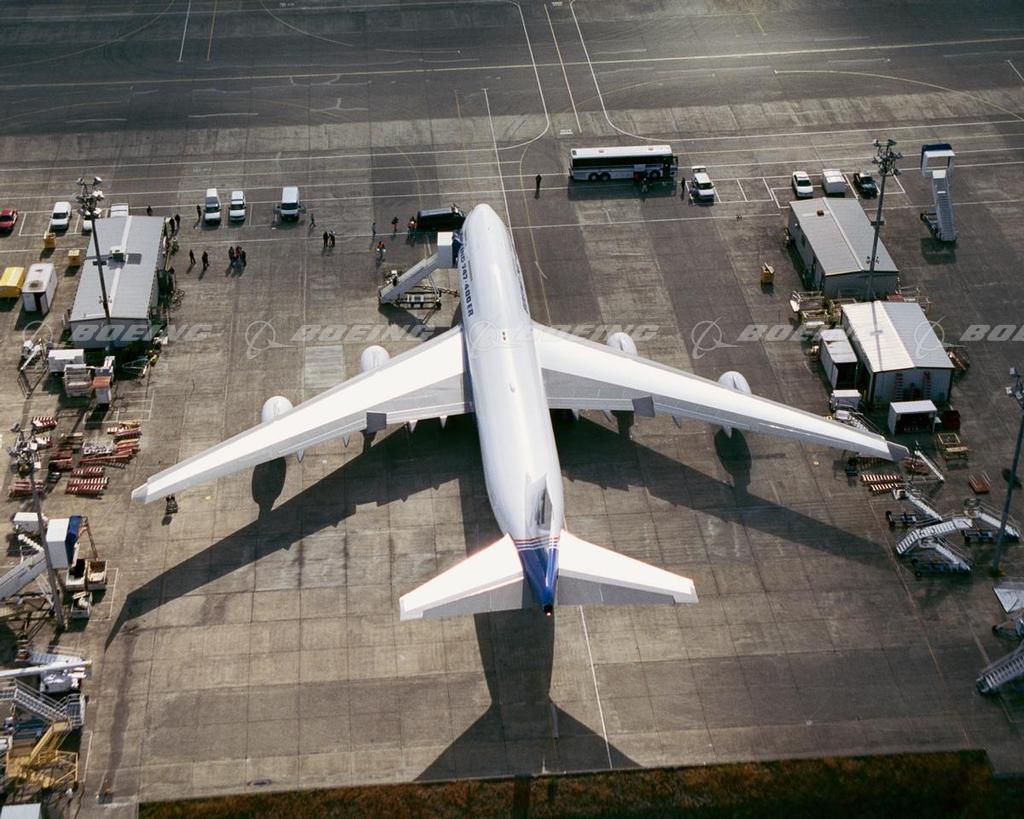 The gigantic 747 jet can hold up to 568 passengers. It also has the capability to fly up to 7,670 nautical miles. It is 231 feet 10 inches long, and its tail is taller than a six-story building. Since entering service in 1970, it has been produced in more than 20 versions, including freighters, convertibles, combis and many 'special-use' models. 747 airplane variants include model 747-100 jets that became Shuttle Carriers, 747-200B jets modified to become Air Force Ones, a 747 jet airframe used for the Advanced Airborne Command Post (E-4), and a 747-400 Freighter used as a platform for the Airborne Laser (ABL). The new longer-range 747-400ER was launched in 2000 and is available in both passenger and freighter versions.