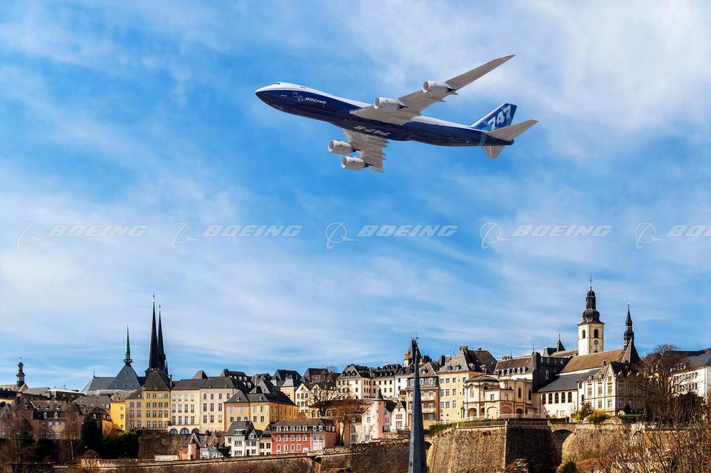 747-8F Flying Over Luxembourg City