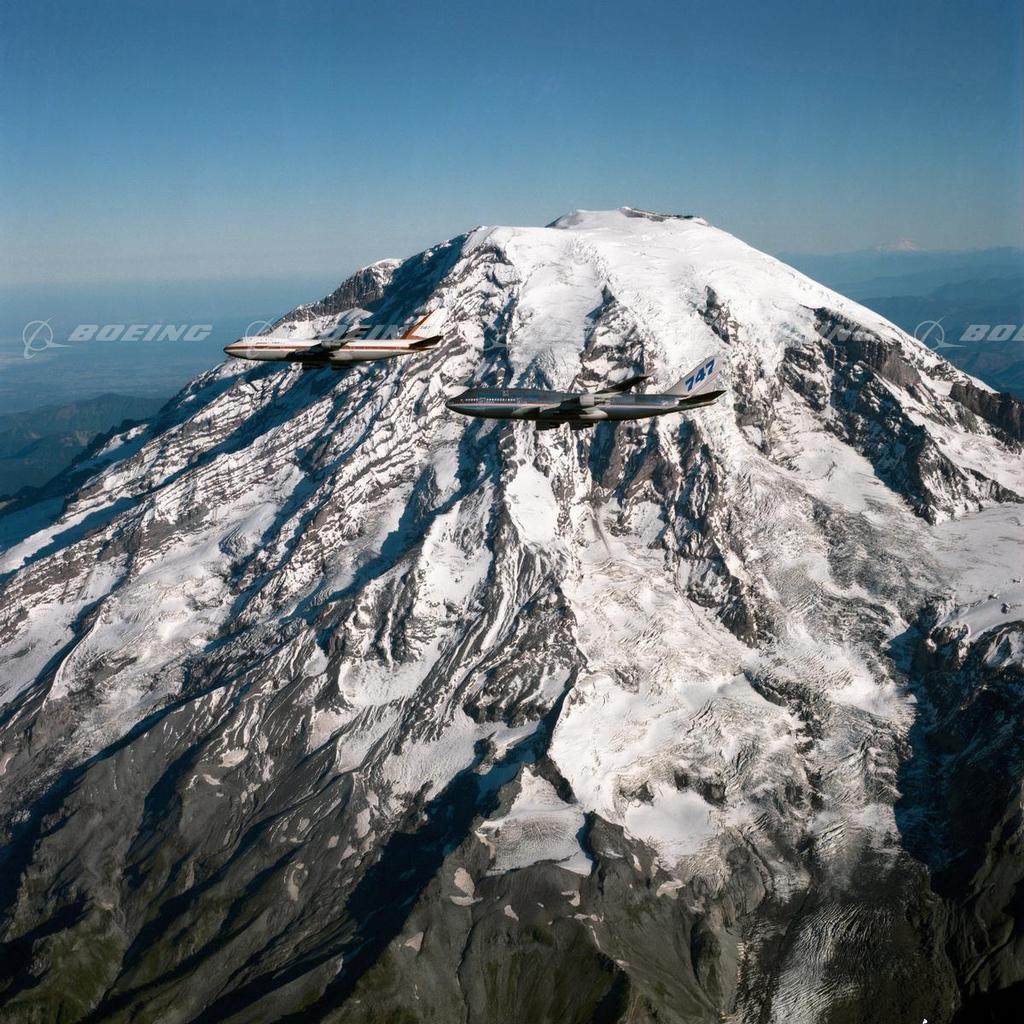 747 Prototype and First 747-400 Flying by Mt. Rainier