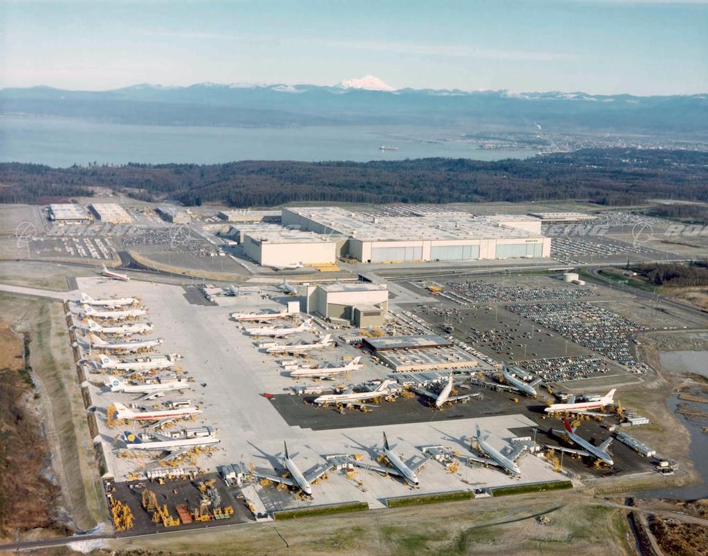 747-100s and 747-200s Parked Outside of Boeing's Everett Factory