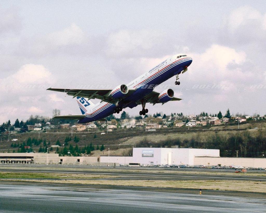 The twin-engine, medium-range Boeing 757 commercial transport first flew Feb. 19, 1982 and was up to 20 percent more fuel efficient than the 727s it was designed to replace. The 757-200, also offered as a freighter, can carry 239 passengers, in two classes, up to 4,520 miles. In September 1996, Boeing launched the 4,000-mile-range 757-300, a stretched model that seats from 243 to 279 passengers. In 18 years of operation, the 757 has carried more than 1.3 billion passengers, more than four times the population of the United States and Canada combined and has flown the equivalent of nearly 25,000 roundtrips between the Earth and the Moon.