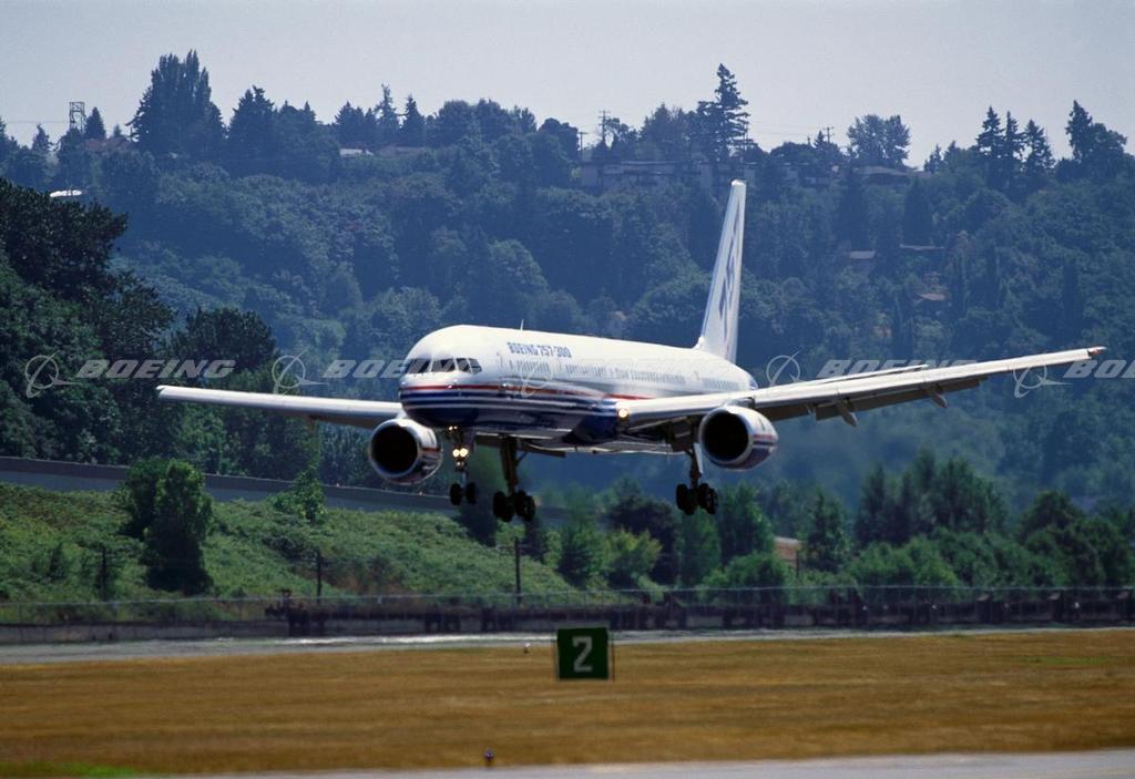 The twin-engine, medium-range Boeing 757 commercial transport first flew Feb. 19, 1982 and was up to 20 percent more fuel efficient than the 727s it was designed to replace. The 757-200, also offered as a freighter, can carry 239 passengers, in two classes, up to 4,520 miles. In September 1996, Boeing launched the 4,000-mile-range 757-300, a stretched model that seats from 243 to 279 passengers. In 18 years of operation, the 757 has carried more than 1.3 billion passengers, more than four times the population of the United States and Canada combined and has flown the equivalent of nearly 25,000 roundtrips between the Earth and the Moon.