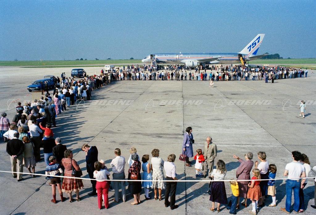 A Boeing 757-300 - an intermediate-range jetliner -- left Seattle on Feb. 03, 2000 for a three-week, around-the-world tour that included flight demonstrations for airline executives and staff, news media, government officials and other aviation representatives. During the tour, the airplane, which entered service in 1999, was showcased at stops in 16 cities in the United States, Iceland, the United Kingdom, the Netherlands, Germany, Spain, the People's Republic of China and Taiwan. The airplane returned to Seattle from Taiwan on Feb. 24, 2000.