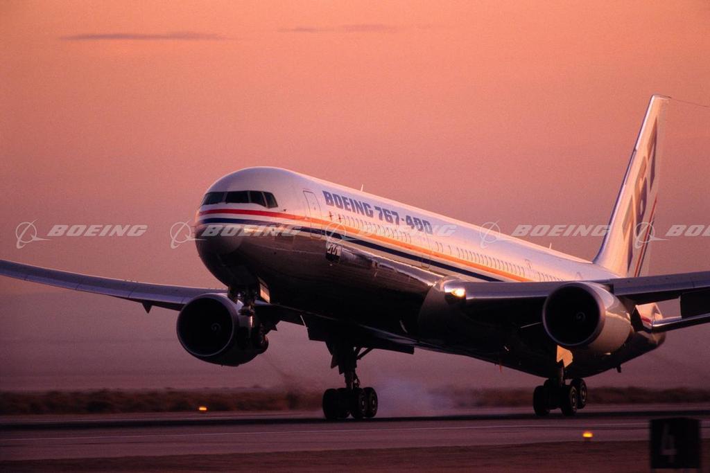 The Boeing 767, built in Everett, Wash., alongside the 747, can carry from 200 to 300-plus passengers. The 767 is a wide-body, double-aisle jet, but, like the smaller standard-body 757, is designed for fuel efficiency. Both planes have nearly identical digital cockpits, allowing crews to be easily qualified on both.