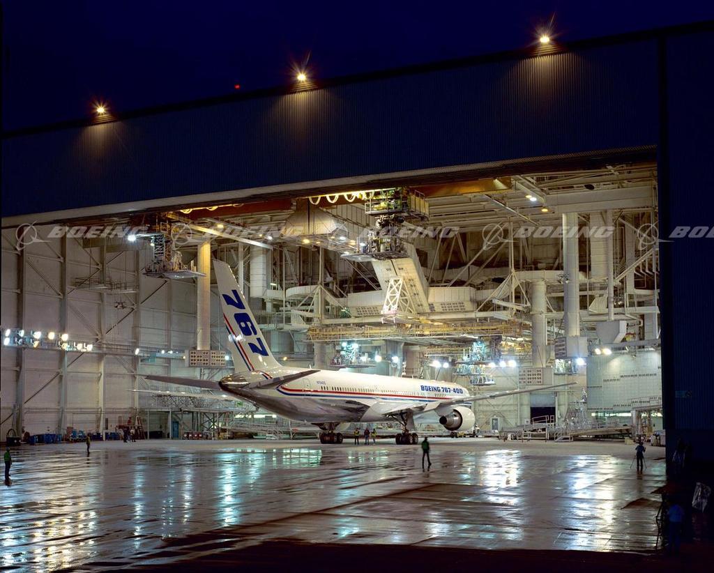 The Boeing 767-400ER with its all-new 777-style interior, new flight deck and innovative raked wing tips is the first new airplane to be introduced in the 21st century. The 767-400ER begins a world tour July 10, 2000 to 17 cities on three continents, and will be on display at the Farnborough Air Show in England from July 24-30. The airplane has a distinctive look, both inside and out, featuring illustrations from Greek mythology and drawings by Leonardo da Vinci. On its fuselage are the words Leading the Way. These words were chosen because of the airplane's role in leading the way in technical innovation, market development, market preference, and passenger comfort.