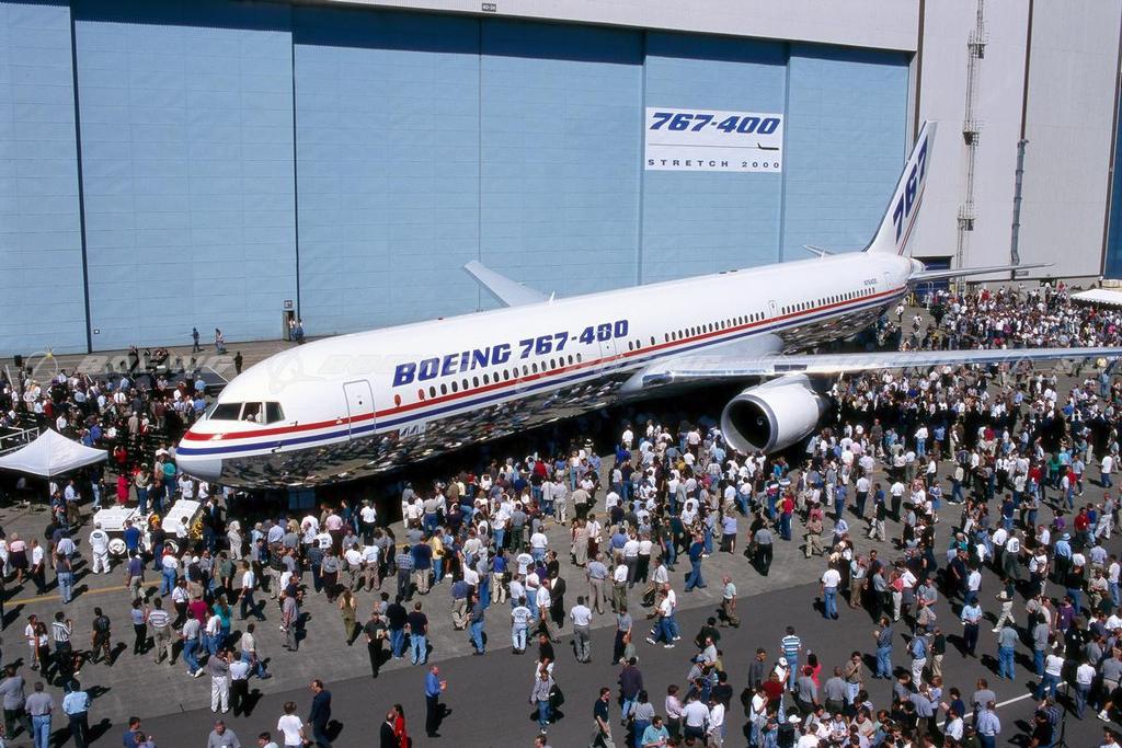 The 767-400ER brings significant improvements in operating economics over competing airplanes in the 240- to 300-seat market. The payload capability, intercontinental range, passenger comfort and commonality with other Boeing jetliners give this airplane strong market appeal. Sized between the Boeing 767-300ER and the Boeing 777-200, the 767-400ER features a lengthened fuselage; aerodynamic improvements, increased takeoff weight capability; and an all-new main landing gear. It is designed to be the most efficient airplane in its size category. Efficient design gives the higher-capacity 767-400ER excellent range capability (approximately 5,645 nautical miles or 10,454 km) to fly about 99 percent of the routes currently being served by airplanes in this size category. The 767-400ER features new, highly back-swept (raked) wing-tip extensions that increase the 767's 156-foot wingspan to 170 feet, 4 inches (51.9 m) designed to increase the aerodynamic efficiency of the wing. This efficiency of design and economy of structure affords the 767-400ER more gate and taxiway flexibility. It can use the same gates as the DC-10-30, MD-11 and L-1011, unlike the A330-200, which must use gates sized by the industry for large airplanes such as the 747 and 777. The 767-400ER interiors have adopted the architectural lines of the award-winning 777 interior. Newly sculpted sidewalls, ceilings and stow bins enhance the wide, open feeling passengers prefer.