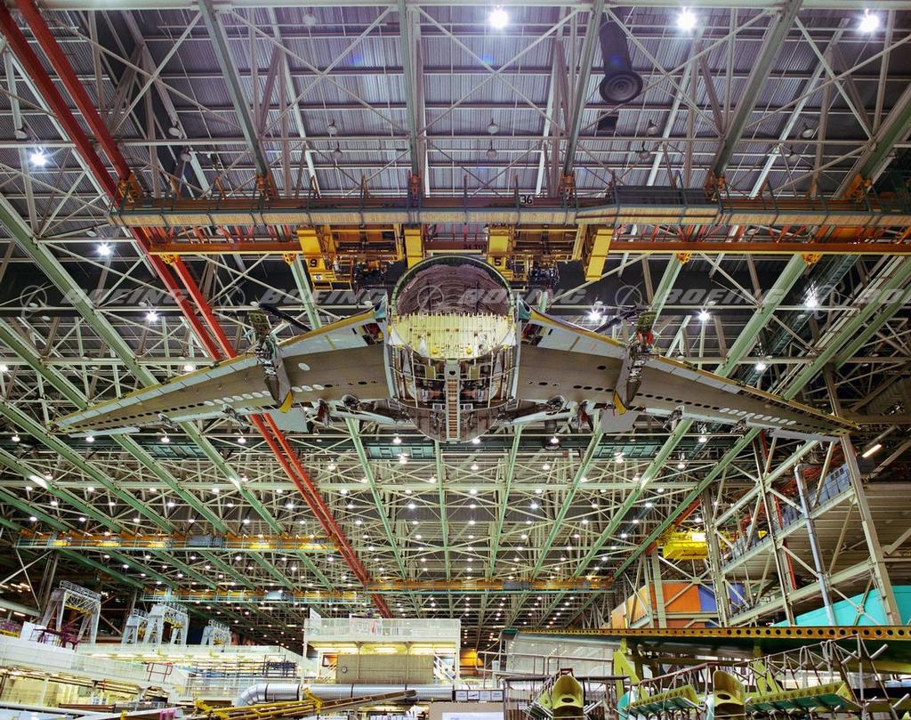 Wings fly overhead, on their way to be joined with the airplane. The Boeing 767 family is a complete family of airplanes providing airlines with maximum versatility in the 200- to 300-seat market. It includes three passenger models - the 767-200ER, 767-300ER and 767-400ER - and a freighter, which is based on the 767-300ER fuselage. The 767-200ER has a range of more than 7,500 miles and the 767-300 freighter can haul 60 tons more than 3,700 miles. In 1997, Boeing launched the 767-400ER, which can take 304 passengers more than 7,000 miles. Military versions include the 767 AWACS, which first flew Aug. 9, 1996, and the 767 tanker/transport, launched in 2000, designed to replace the aging KC-135 aerial tankers.