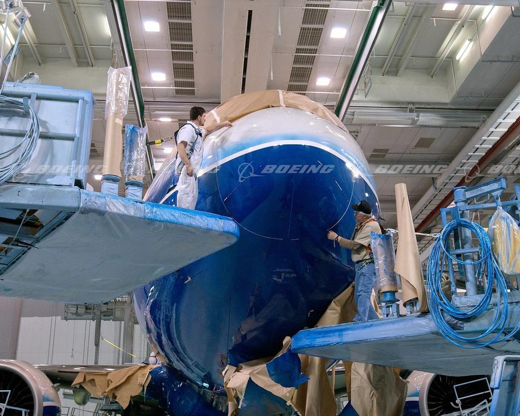 New Boeing Livery is Applied to a 777-200LR at the Everett Paint Hangar