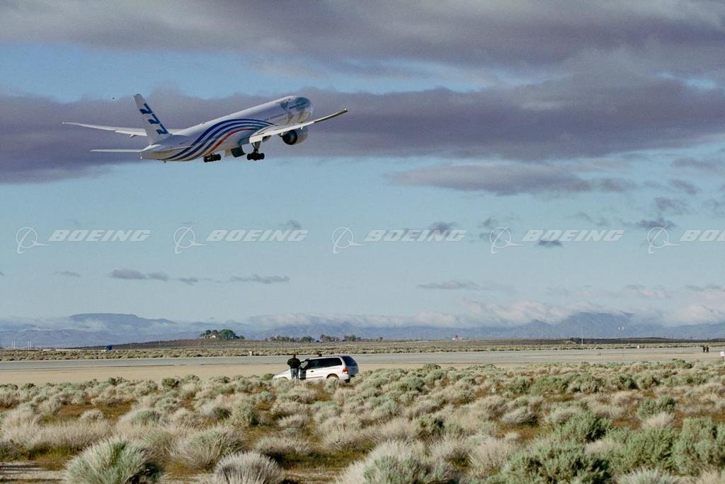 777-300ER Takes Off on Flight Test from Edwards Air Force Base