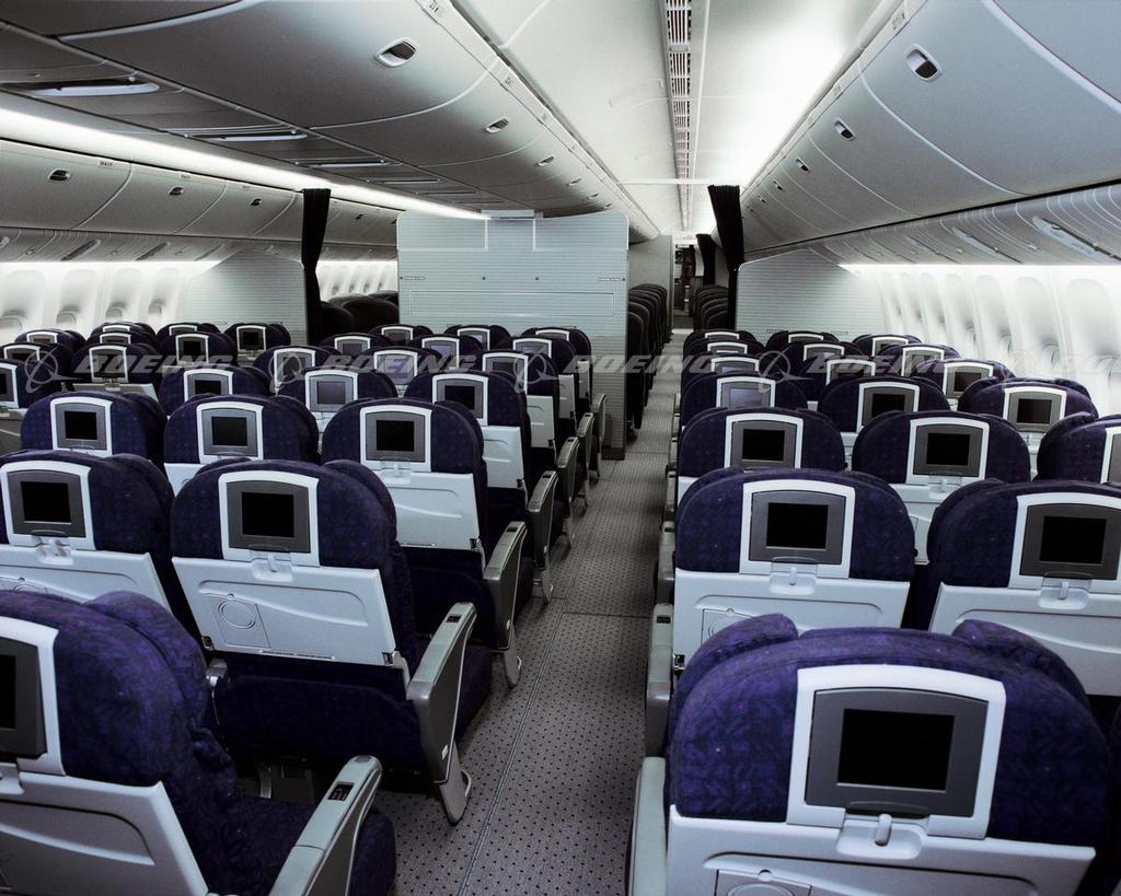 The 777 was designed especially for comfort on longer flights. The 777 is 30.9 inches (78.4 centimers) wider than its Airbus counterpart, the A330/340. This extra elbowroom makes the 777 the widest airplane in its class, allowing for roomier aisles and seats. Although individual airline customers choose seating configurations, once an interior is configured, the extra width makes a difference in coach, business, and economy classes. When airlines opt to seat nine abreast in economy class, for example, the seats can be 18 1/2 inches (46.99 centimeters) wide - the widest in the industry. In business class, seating can accommodate 20-inch (50.8 centimeter) wide seats, the same size as first-class seats on many competing airplanes.