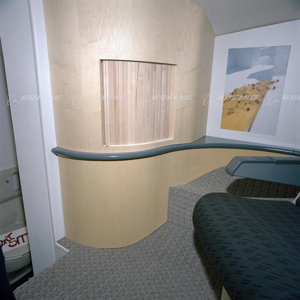 Boeing is offering its 777 customers new innovations that take advantage of the space in the overhead area of the airplane -- the area located between the top of the stow bins and the crown of the airplane. These innovations will allow operators to use the overhead space for crew rest stations and storage. Locating crew rest stations and storage in the overhead areas of the airplane allows the main and lower decks to be used for generating revenue, such as increased passenger seating or cargo capacity.
