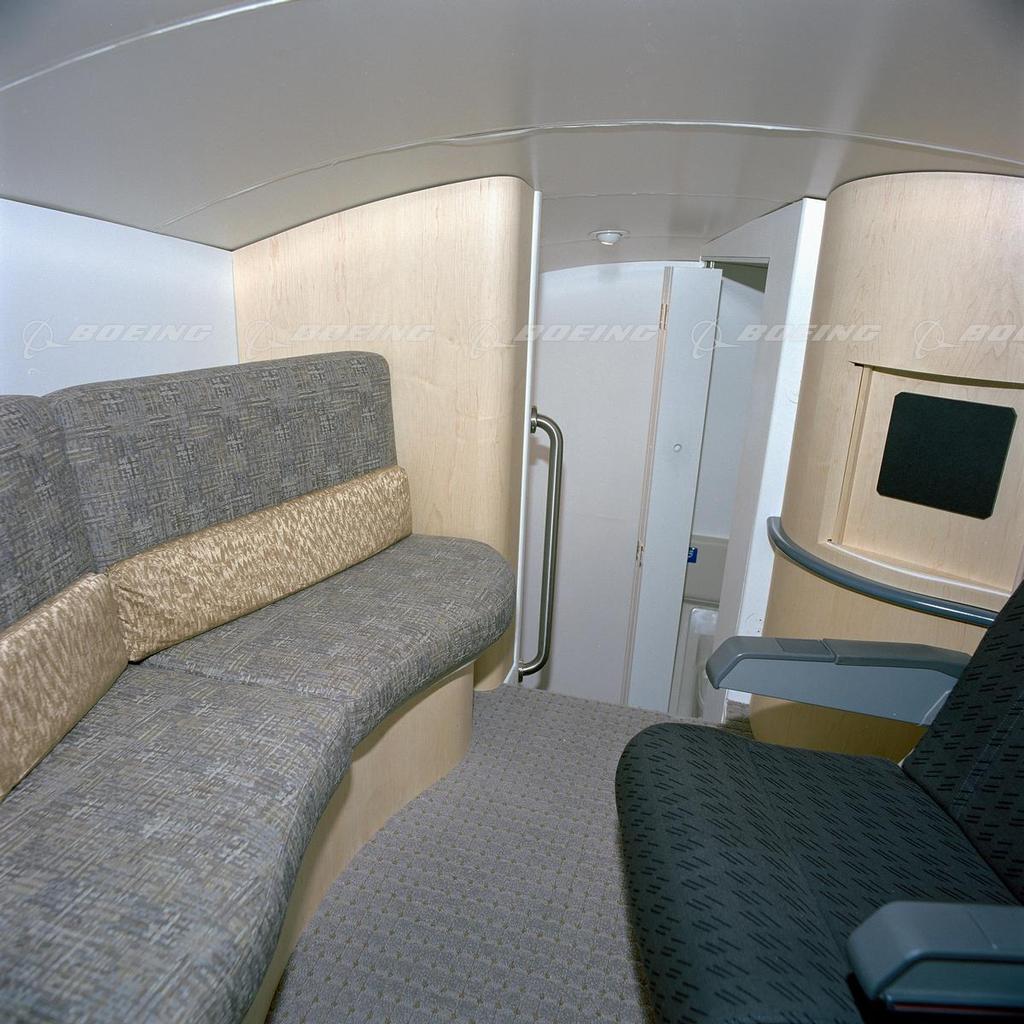 Boeing is offering its 777 customers new innovations that take advantage of the space in the overhead area of the airplane -- the area located between the top of the stow bins and the crown of the airplane. These innovations will allow operators to use the overhead space for crew rest stations and storage. Locating crew rest stations and storage in the overhead areas of the airplane allows the main and lower decks to be used for generating revenue, such as increased passenger seating or cargo capacity.