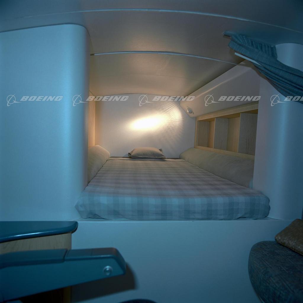 Boeing is offering its 777 customers new innovations that take advantage of the space in the overhead area of the airplane -- the area located between the top of the stow bins and the crown of the airplane. These innovations will allow operators to use the overhead space for crew rest stations and storage. Locating crew rest stations and storage in the overhead areas of the airplane allows the main and lower decks to be used for generating revenue, such as increased passenger seating or cargo capacity.