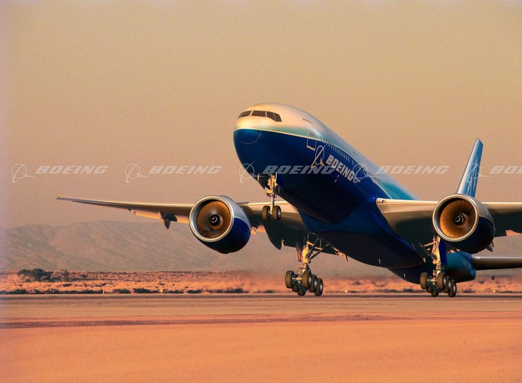 This 777 is pictured in the majestic shades of blue and white inspired by the Earth and sky that highlight the new look Boeing is adopting as its Commercial Airplanes brand colors. The new Boeing livery draws its inspiration from the Boeing “Horizon” ad campaign, with a paint scheme that flows along the fuselage in lines reminiscent of the earthÆs gently curved horizon. The colors û whites, fresh blues and aqua û are suggestive of the colors of our planet as it appears from space. The new livery is unique from other paint designs in that there are only two hard lines on the airplaneÆs design û the top and bottom of the “horizon” line. All other colors in the livery blend seamlessly across the fuselage and wings. Boeing painters used an automotive painting technique called “fading” to attain this effect.