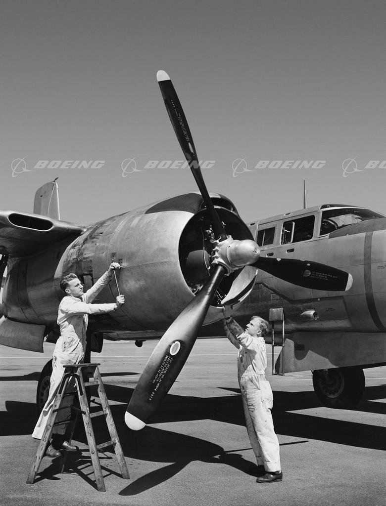 A Douglas "Rosie" in Long Beach Rivets a Boeing B-17 Tail