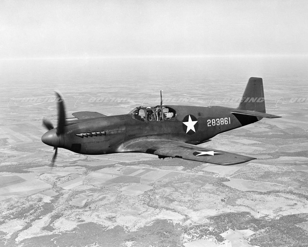 A-36 Invader (P-51 Mustang) in Flight, AT-6 Texan in Background
