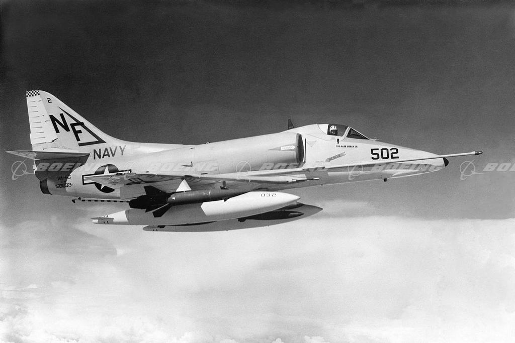 The A4D/A-4 Skyhawk light attack bomber made its first flight on June 22, 1954. It had numerous nicknames - Heinemann’s Hot Rod (after Douglas designer Ed Heinemann), the Bantam Bomber, Mighty Mite, and Scooter. Douglas built 2,960 Skyhawk between 1954 and 1979. The Navy’s Blue Angels flight demonstration squadron flew the single-engine A-4 Skyhawk II from 1974 to 1986. The Skyhawk was scheduled to remain active with several air forces into the 2000s.
