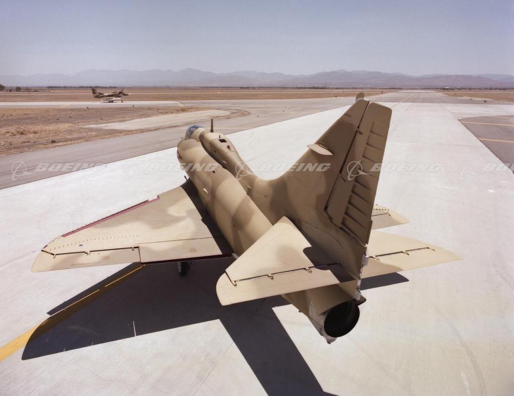 Douglas A-4 Skyhawk (1954-1979): Another successful attack aircraft from the Ed Heinemann team at Douglas was the A-4 Skyhawk. Designed for carrier operations, the Skyhawk was America’s smallest combat jet. Known as “Heinemann’s Hot Rod,” “Scooter,” and the “Mighty Midget,” it reversed the trend toward bigger and more complex aircraft in favor of durability and reliability. The A-4D first flew on June 22, 1954, demonstrating combinations of high performance and lightweight, with speed and maneuverability never before seen in an attack jet. After 1962, the joint service designation was changed to A-4. Behind the AD Skyraider, the A-4 Skyhawk was the most numerous postwar combat aircraft built by Douglas. During its long service career, the U.S. Navy and Marine Corps and the air arms of six other nations flew the A-4 The Skyhawk saw combat in Vietnam, the Middle East, the Falkland Islands, and the Persian Gulf. For 12 years, from 1974 to 1986, the A-4 Skyhawk served with the Navy’s Blue Angels flight demonstration team. In 1979, twenty-five years after its first flight, the last of 2,960 A-4s was delivered. Two-seat trainer versions included the TA-4F, TA-4J and the TA-4K Series. In addition to its primary role as a jet trainer, the TA-4 retained the A-4’s combat capabilities with bombs, rockets, missiles and guns. The TA-4 series had a slightly longer fuselage but carried less internal fuel than the A-4 attack bomber series. The first of the A-4 jet trainer series was delivered to the U.S. Navy in February 1966. A total of 555 TA-4 jet trainers were built. An additional 23 TA-4s were modified from A-4 airframes.