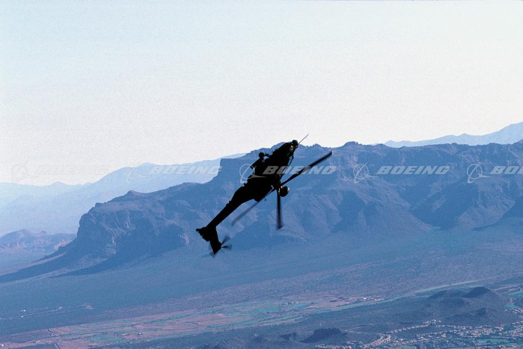 The AH-64D Apache Longbow can perform loops, left and right rolls and turns, split S and hammerhead maneuvers, and 360 degree turns, all while flying at full mission weight of approximately 16,000 pounds.