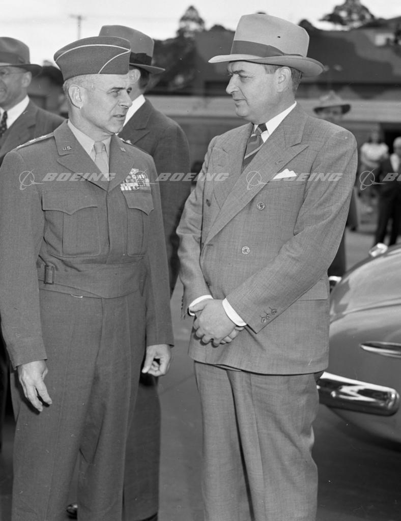 Acting Boeing president Claire Egdevdt & General Jimmy Doolittle. 1945.