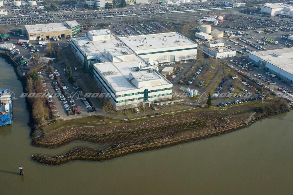 Boeing completed the largest habitat restoration in the Lower Duwamish River Waterway in Seattle, Washington, transforming nearly one mile of former industrial waterfront into a wetland resource that improves Puget Sound salmon runs. This habitat was created in the footprint of the former Plant 2 facility, the home of the B-17 Flying Fortress bomber during World War II. From tufted hairgrass and bulrush to willows and big leaf maple, more than 170,000 native plants now occupy five acres along the water’s edge. These wetland plants and grasses, along with piles of woody debris that are anchored in place along the shoreline, provide refuge and food sources for fish and wildlife. A protection system built out of ropes and lightweight steel rods is currently in place to prevent geese from uprooting the young plants.