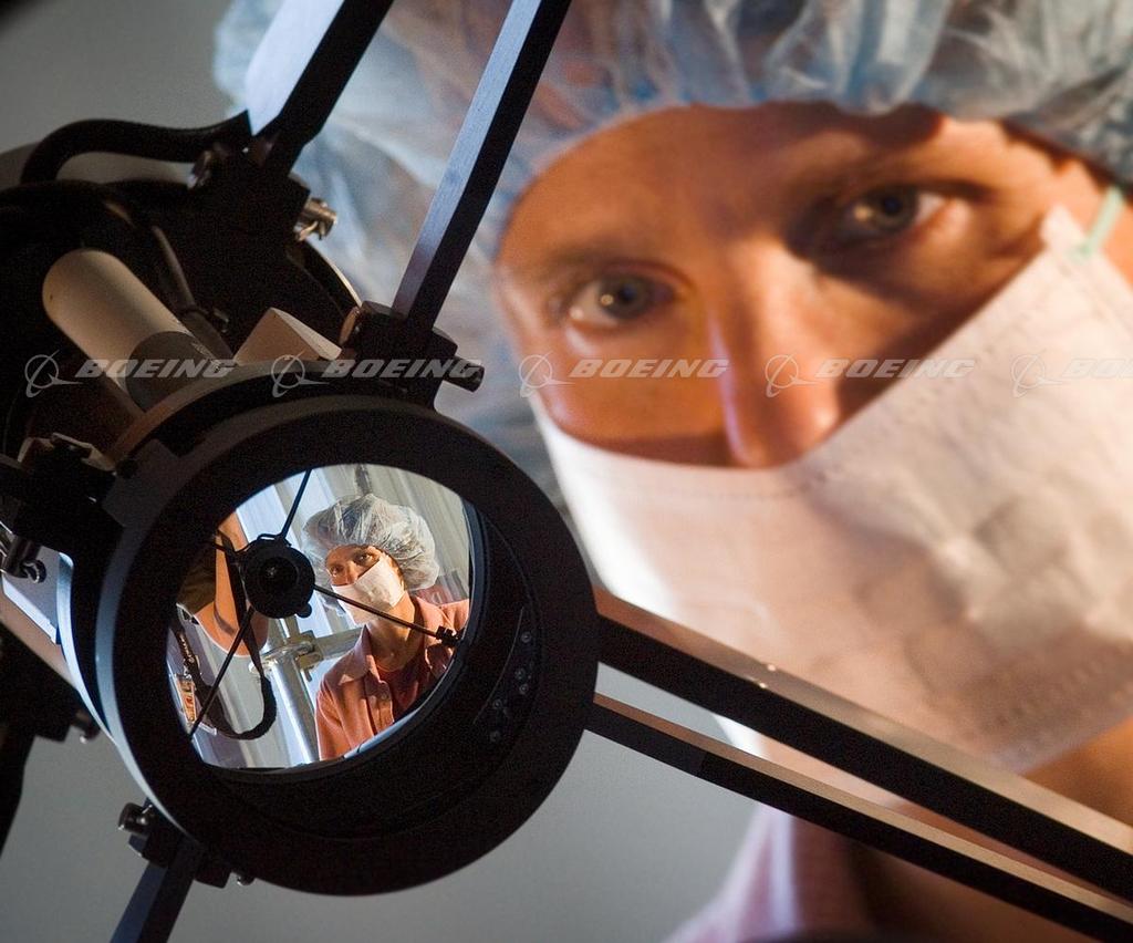 Boeing SVS Technician Inspects Airborne Relay Mirror System (ARMS)