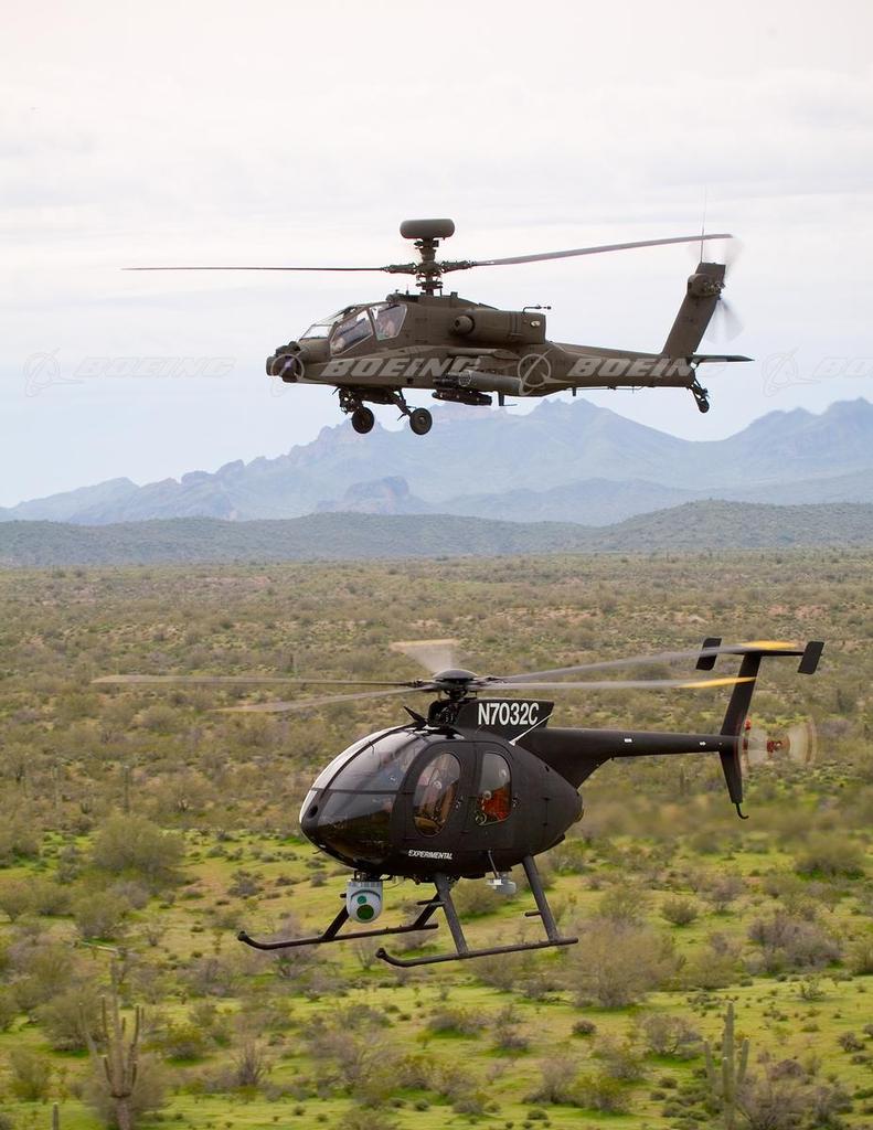 MH-6 Little Bird UAV with AH-64D Apache Longbow